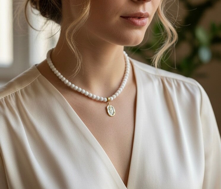 Each design blends classic beauty with modern simplicity, making our jewellery perfect for daily wear, special occasions, or meaningful gifts. From pearl necklaces to gold layered chains and gemstone pieces, every item is created with attention to detail and a love for natural materials.